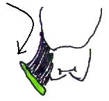まず、歯茎から歯の方へ向かって(上の歯は上から下へ、下の歯は下から上へ)歯ブラシを当てます。そして、歯ブラシを半回転させながら磨いていきます。